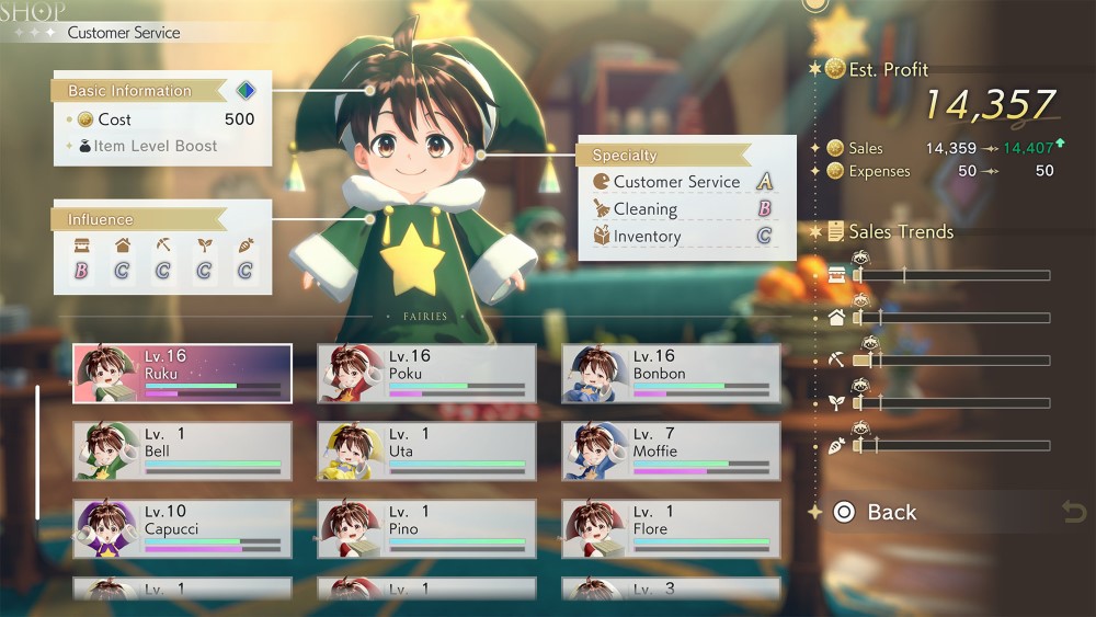 Dengan ngehidupin lagi toko Mistletoe Miscellaneous peninggalan kakeknya Rias, pemain bisa bantu membangun kembali kota Hallfein. Barang hasil synthesis bisa dijual, dan uangnya dipakai buat upgrade kota, yang nantinya bakal ngebuka buku resep dan cerita baru. Peri yang direkrut dari dungeon juga bisa ditugasin buat bantu jaga toko.