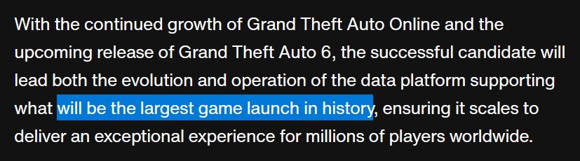 Penemuan ini pertama kali disebarin sama pengguna Reddit bernama Consistent-Ad-7455. Dia nemuin lowongan untuk posisi Lead Software Engineer di kantor Rockstar New York, dan di deskripsinya tertulis, “Dengan pertumbuhan Grand Theft Auto Online yang terus berlanjut dan peluncuran Grand Theft Auto 6 yang akan datang, kandidat terpilih bakal memimpin pengembangan dan operasional platform data untuk mendukung peluncuran game terbesar dalam sejarah, supaya bisa berjalan mulus buat jutaan pemain di seluruh dunia.”