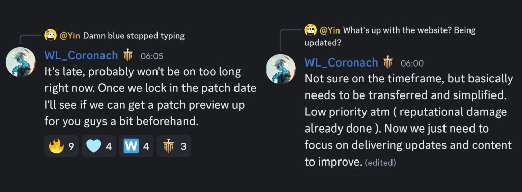 Tapi berbeda dari asumsi, pihak developer sepertinya masih berkomitmen untuk mendukung gamenya meski di tengah situasi memprihatinkan saat ini. Menurut konfirmasi dari perwakilan developer lewat channel Discord resmi mereka, ternyata memang ada keterlambatan untuk rilis patch besar yang saat ini masih aktif digarap. Setelah mereka menetapkan jadwal rilisnya, maka ada rencana untuk berbagi preview konten terbaru yang bisa diantisipasi.