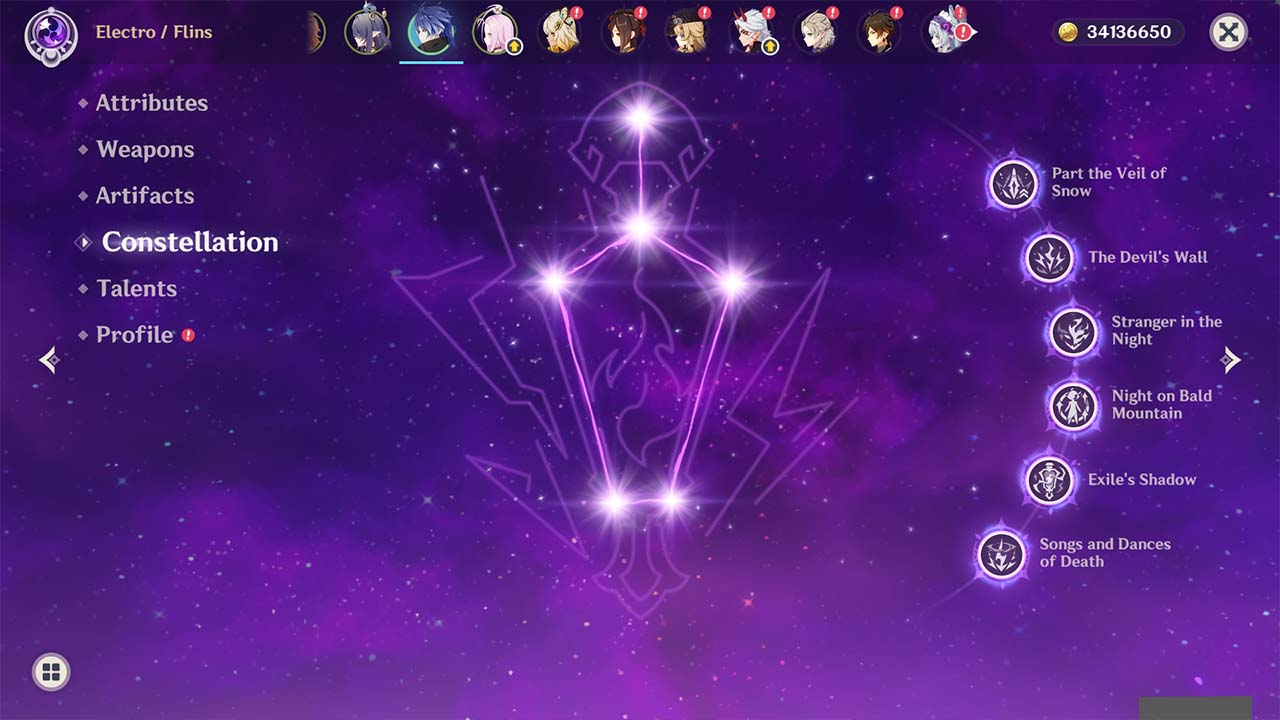Bagi yang mungkin tertarik untuk mengincar tingkatan Constellation lebih tinggi, C1 miliknya yaitu “Part of the Veil Snow” memberi beragam efek yang sudah sangat bagus seperti mengurangi waktu cooldown Northland Spearstorm menjadi 4 detik saja, hingga memaksimalkan pemulihan Elemental Energy yang otomatis ikut membuatnya jadi lebih cepat mengakses Elemental Burst. C2 “The Devil’s Wall” juga hadir dengan beragam bonus menarik seperti peningkatan AoE Electro DMG hingga 50% untuk Northland Spearstorm dan tambahan efek debuff Electro RES ke musuh hingga 25% selama memenuhi kondisi Moonsign: Ascendant Gleam.