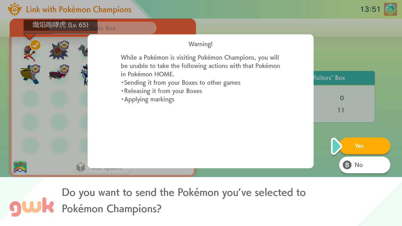 • Pilih Pokémon yang ingin dikirim, lalu kirim ke Champions