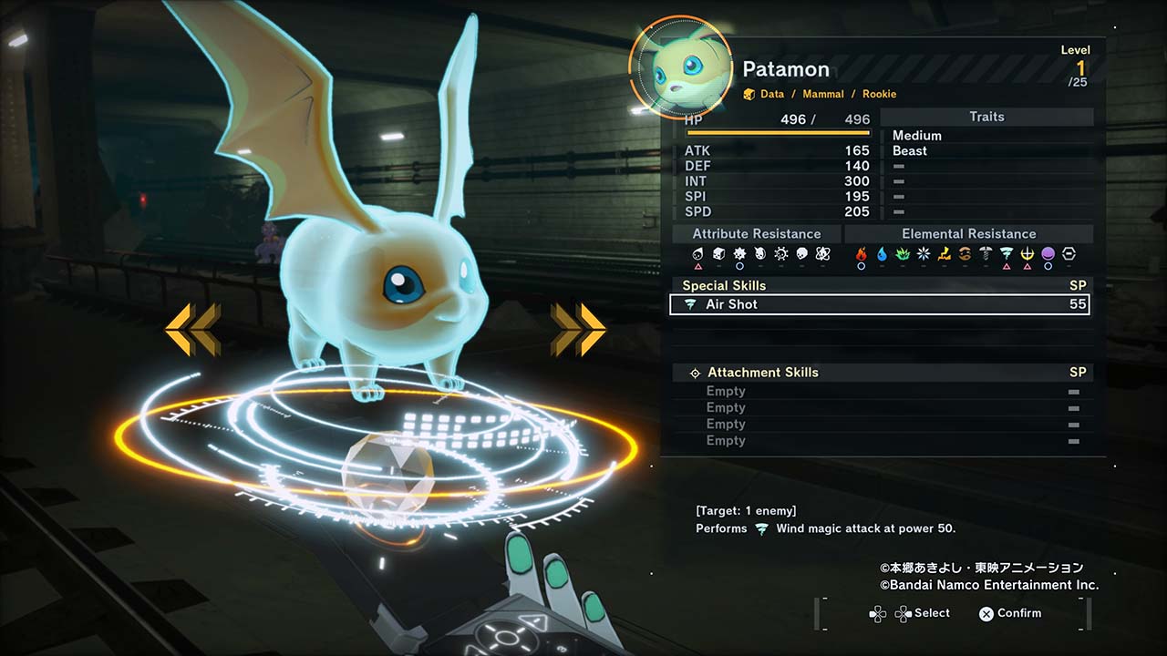 Kami tidak menempatkannya sebagai pick terbaik karena Patamon termasuk tipe Data yang lemah dengan Virus, dan kebetulan sebagian besar boss yang kamu hadapi di porsi awal gamenya termasuk tipe Virus. Ini bahkan menempatkannya dalam posisi lebih riskan dibanding DemiDevimon, tapi di luar pertarungan boss dia memang sangat bisa diandalkan. Meski masih relatif cepat untuk direkrut dengan akses Digivolution dari Tokomon, setidaknya kamu masih butuh ekstra waktu dibanding DemiDevimon, apalagi ditambah kebutuhan stats yang juga lebih tinggi di 600 Max SP dan 360 INT.