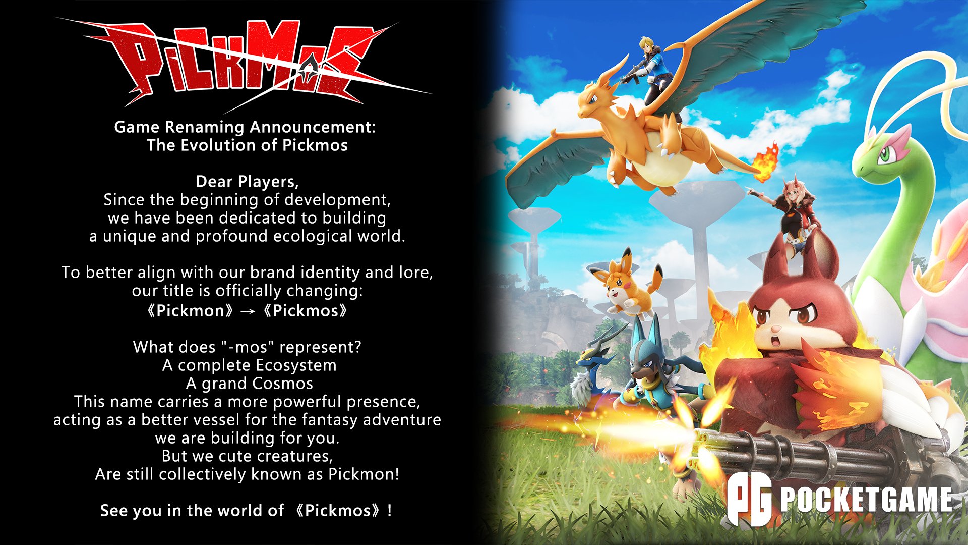 Game indie yang sempat ramai karena kemiripannya dengan Pokémon akhirnya resmi ganti nama. Developer PocketGame mengumumkan bahwa proyek mereka yang sebelumnya berjudul Pickmon kini berubah jadi Pickmos, dengan alasan untuk “lebih sesuai dengan identitas brand” yang sedang mereka bangun.