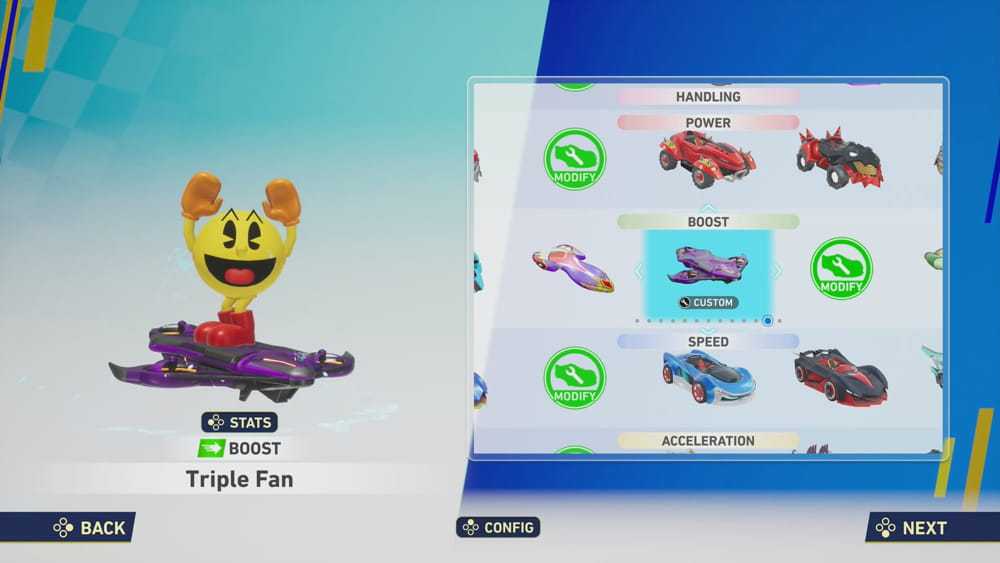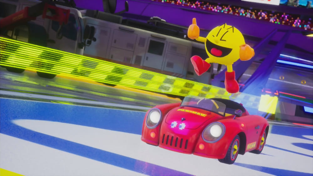 Mobil PAC-MAN Mobile juga jadi daya tarik tersendiri. Desainnya sederhana tapi ikonik, dan terasa unik dibanding kendaraan lain di roster. Dari segi handling, mobil ini terasa seimbang dan cocok dipakai di berbagai tipe lintasan, baik yang lurus cepat maupun yang penuh tikungan sempit.