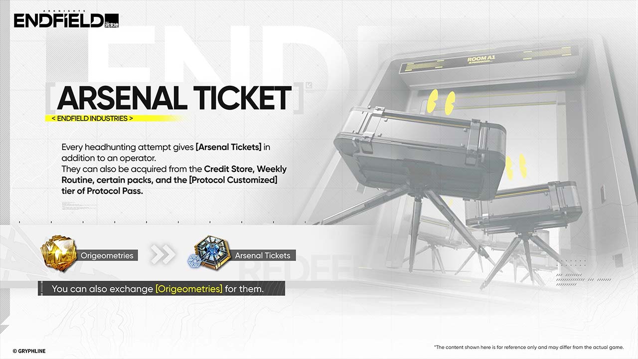 Tidak ketinggalan gamenya juga memiliki gacha senjata lewat Arsenal Issue, tapi cara kerjanya lumayan berbeda karena kamu hanya bisa menggunakan Arsenal Ticket sebagai mata uang utama. Seperti yang sempat kami jelaskan tadi, Arsenal Ticket bisa didapat dari setiap pull gacha karakter atau dengan konversi dari mata uang premium Origeometries, jadi kamu bisa mengumpulkannya sebanyak mungkin secara konsisten.