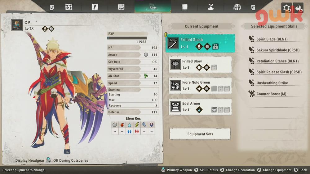 Untuk pertama kalinya dalam seri ini, tersedia slot gem pada armor. Gem senjata memberikan kemampuan aktif yang memodifikasi serangan atau efek kondisi tertentu. Long Sword menggantikan Sword and Shield dengan fokus stance, Great Sword memungkinkan penyimpanan charge untuk serangan single target atau area besar, sementara senjata Blunt dan Pierce kini memiliki peran lebih tegas.