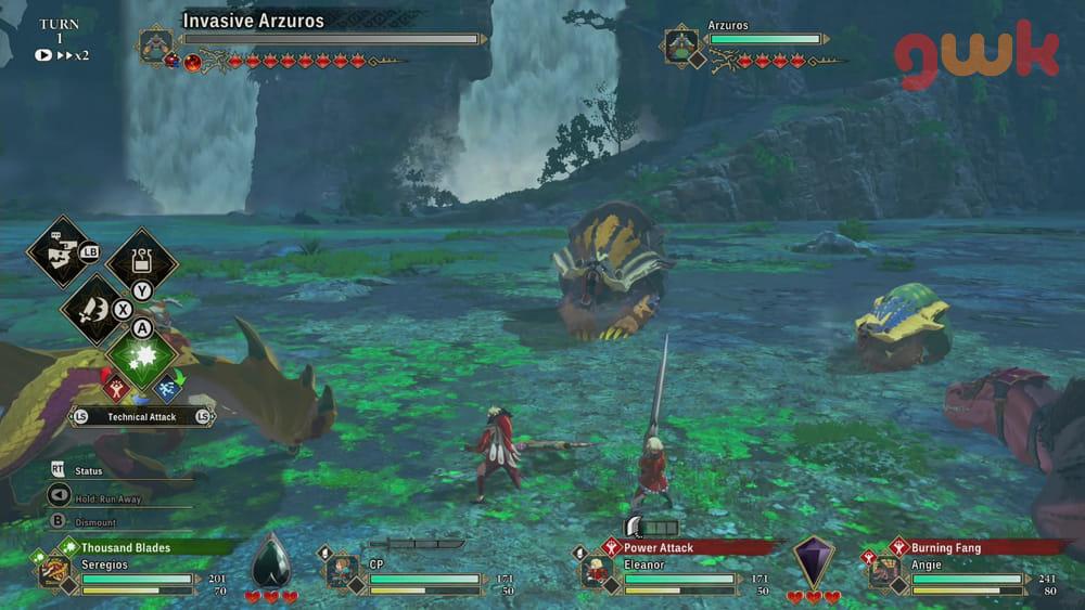 Attack berfungsi untuk langsung mengurangi health musuh. Sementara itu, Wyvernfell dipakai untuk menguras pengukur Wyvernsoul milik monster. Pengukur ini jadi mekanik stagger utama dalam permainan. Kalau berhasil dikosongkan sepenuhnya, monster akan stagger dan terbuka lebar terhadap serangan, menciptakan momen krusial yang sangat menguntungkan.