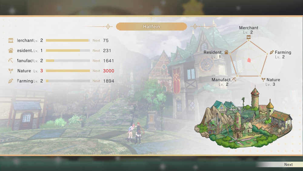 Di manajemen toko, pemain bisa benar-benar menjual hasil synthesis mulai dari ingot, alat, sampai senjata. Uang yang didapat bisa dipakai untuk memperbesar usaha. Sementara pembangunan kota memungkinkan kita menginvestasikan uang dan material ke “Star Landing” alias semacam balai kota. Dari sini, level kota bisa naik dan semakin banyak distrik terbuka, dari Merchant, Residential, Manufacturer, Nature, sampai Farming.
