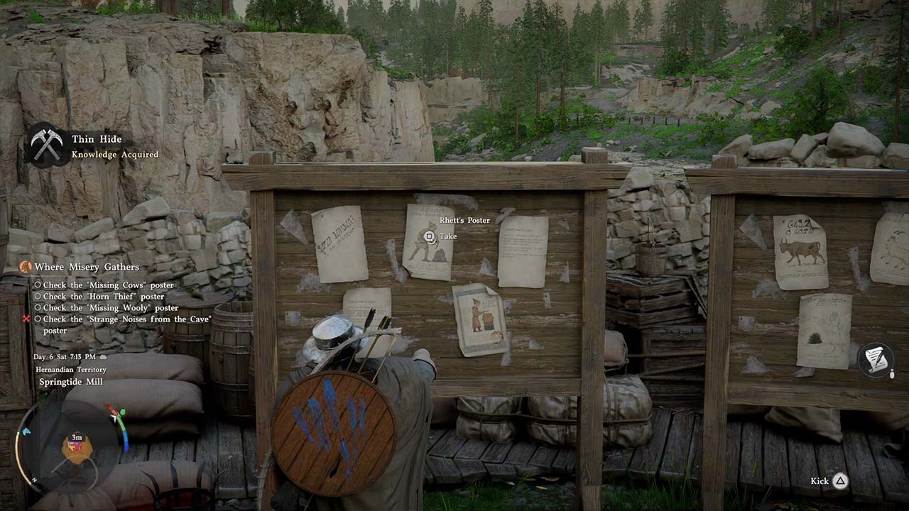 Side quest juga menjadi poin yang campur aduk. Jumlahnya sangat banyak, bahkan bisa dibilang terlalu banyak, dan sebagian besar mengikuti struktur yang familiar—fetch quest, membersihkan kamp, atau investigasi sederhana dari satu tempat ke tempat lain. Sistem bounty memang menambahkan sedikit variasi dengan target bernama yang memiliki kepribadian dan tampilan unik, tetapi secara mekanik tidak berkembang jauh selain melacak, menangkap, dan mengambil hadiah. Sistem ini cukup baik dalam mendorongmu ke area baru karena sering kali lokasi target jauh dari tempat kamu menemukan poster bounty, tetapi tidak berkembang lebih jauh dari itu, dan kamu tetap harus berjalan kembali sambil membawa tubuh mereka yang sering kali jauh dari titik penjaga tempat kamu menyerahkannya.