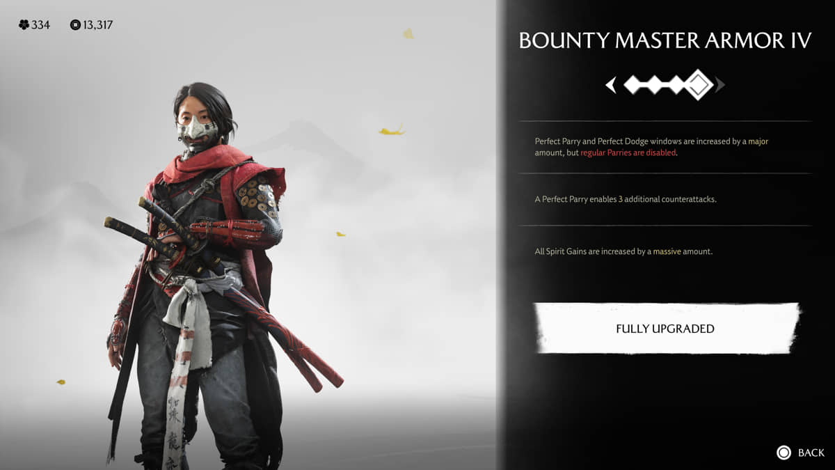 Setiap armor di game ini didesain buat ngedukung playstyle yang beda-beda: Melee, Ranged, Assassination, atau Utility. Ada yang khusus buat gaya main agresif ala samurai, misalnya Bounty Master Armor. Armor ini ngehapus parry biasa (jadi cuma ada Perfect Parry), tapi bikin timing parry lebih gampang plus ngasih Spirit ekstra tiap kali kamu ngalahin musuh. Sebaliknya, Taro’s Armor bikin HP kamu lebih tebal dan ningkatin resistensi terhadap serangan api dan dingin, cocok buat player yang fokus ke survival.