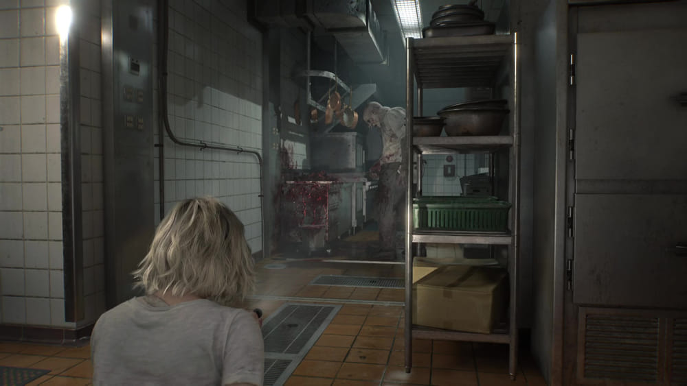 Mode first-person benar-benar meningkatkan ketegangan. Napasnya yang berat dan teriakan ketakutannya memenuhi ruang audio. Sementara dalam third-person, kerentanan fisiknya terlihat jelas — kakinya bisa goyah saat berlari, interaksinya dengan objek terasa canggung seolah ia hampir kehilangan keseimbangan. Rasa takutnya terasa nyata dan membumi.