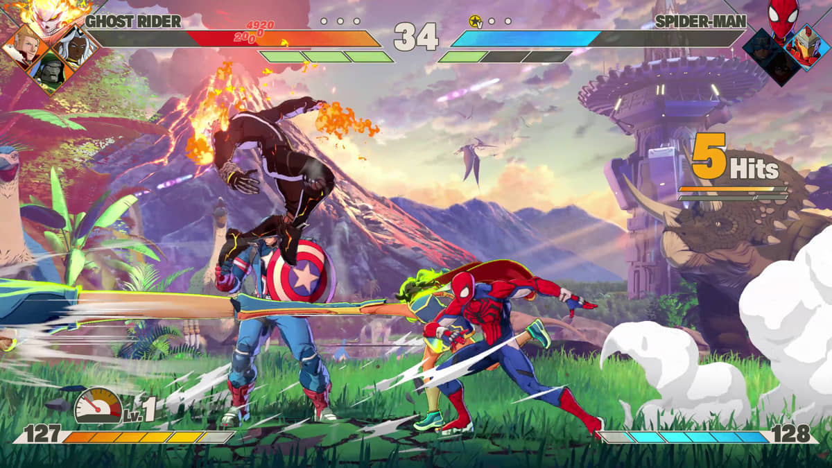 Masing-masing hero punya kemampuan unik serta super move yang menggambarkan kepribadian komiknya dengan sangat akurat. Spider-Man lincah dan fokus pada combo, menggunakan jaring untuk setup dan pressure dari udara. Ghost Rider jadi kebalikannya, penuh kekuatan dan intimidasi, menggunakan rantai api untuk area control dan super attack yang benar-benar brutal.