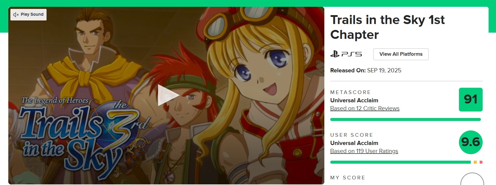 Dengan rilisnya Trails in the Sky 1st Chapter, akhirnya Nihon Falcom telah memberi pintu masuk paling ideal ke franchise JRPG andalan mereka. Berhubung setiap seri Trails memiliki cerita yang saling berkaitan antar satu sama lain hingga lebih dari 10 game, memilih untuk mengikuti ceritanya dari awal tentu akan memberi kepuasan maksimal, dan untuk remakenya mereka juga berhasil memberi kualitas yang begitu solid. Saking solidnya Trails in the Sky 1st Chapter sukses masuk jajaran game dengan rating tertinggi di sepanjang 2025.