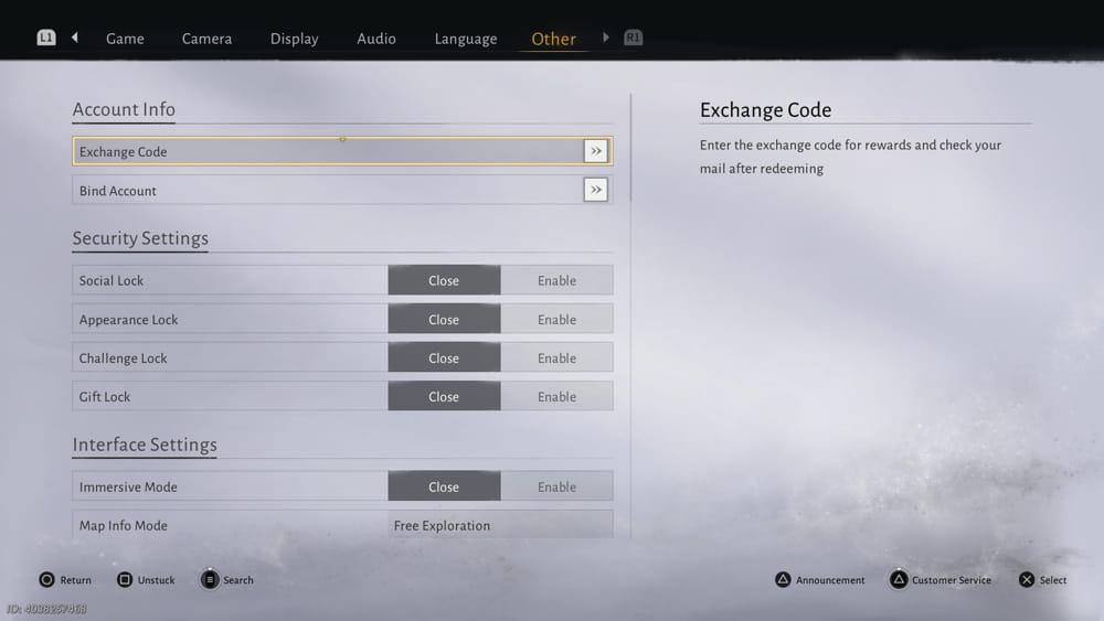 • Pilih Exchange Code, lalu masukkan kodenya di kotak yang tersedia dan tekan tombol di sebelahnya.