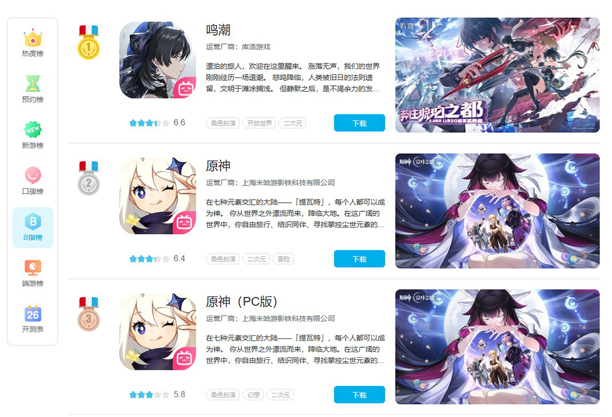Genshin Impact menyusul di posisi kedua dan ketiga untuk B Index Ranking, sementara khusus untuk PC Ranking posisi kedua juga diisi Genshin Impact yang kemudian diikuti Honkai: Star Rail di posisi ketiga. Kedudukan tinggi Genshin Impact sudah pasti karena efek dari rilis update Version Luna III di 3 Desember lalu, tapi hype saat ini sudah mulai berpindah ke Wuthering Waves yang memang akan mendapat update major dengan fokus ke region futuristik bernama Lahai-Roi.